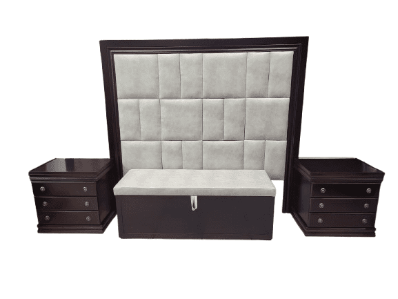 King : Size Full Set Panel Headboard? ? ? R32,000.00 (Headboard,Base,2xPedestals,Storage Blanket Box) in fabric